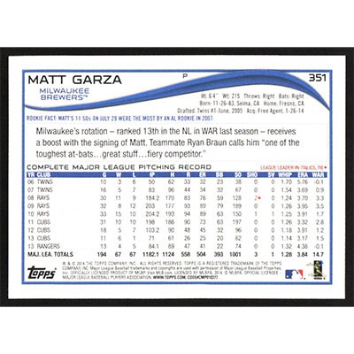 This is a 2014 Topps Mini Matt Garza baseball card. The card is #351 and pictures show condition.