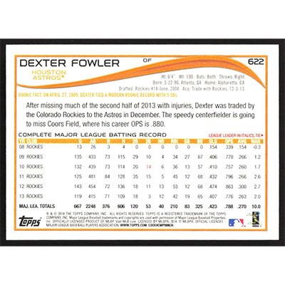This is a 2014 Topps Orange Dexter Fowler baseball card. The card is #622 and pictures show condition.