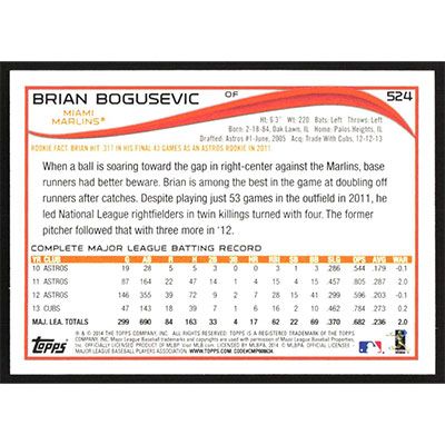 This is a 2014 Topps Red Foil Brian Bogusevic baseball card. The card is #524 and pictures show condition.