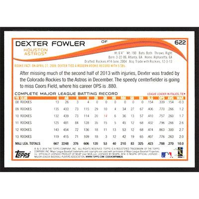 This is a 2014 Topps Red Foil Dexter Fowler baseball card. The card is #622 and pictures show condition.