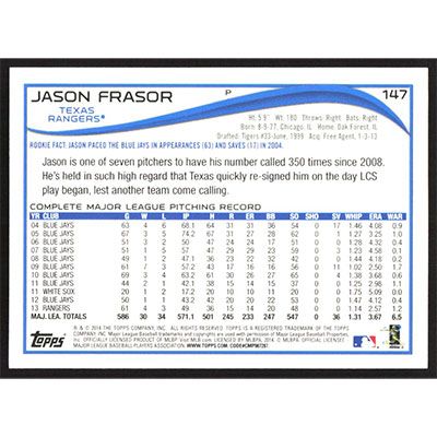 This is a 2014 Topps Target Red Jason Frasor baseball card. The card is #147 and pictures show condition.