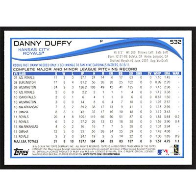 This is a 2014 Topps Target Red Danny Duffy baseball card. The card is #532 and pictures show condition.