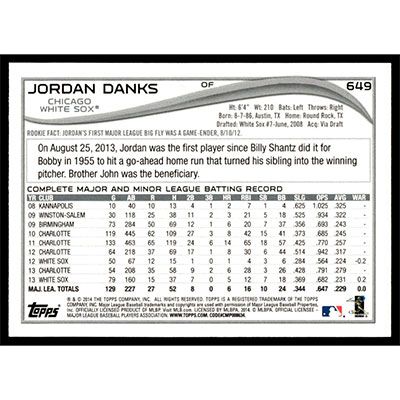 This is a 2014 Topps Target Red Jordan Danks baseball card. The card is #649 and pictures show condition.