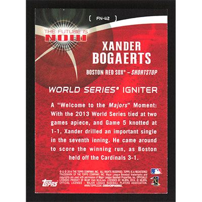 This is a 2014 Topps The Future is Now Xander Bogaerts baseball card. The card is #FN-42 and pictures show condition.