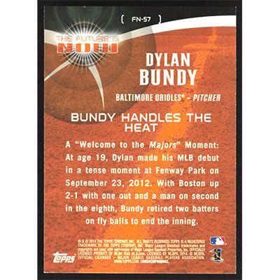 This is a 2014 Topps The Future is Now Dylan Bundy baseball card. The card is #FN-57 and pictures show condition.