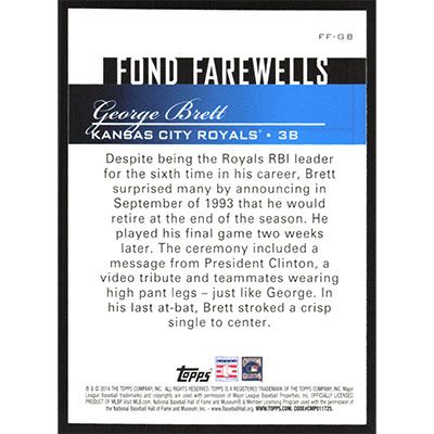This is a 2014 Topps Update Fond Farewells George Brett baseball card. The card is #FF-GB and pictures show condition.
