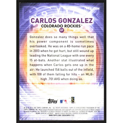 This is a 2014 Topps Update Power Players Carlos Gonzalez baseball card. The card is #PPS-CGN and pictures show condition.