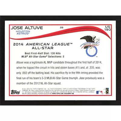 This is a 2014 Topps Update Red Hot Foil Jose Altuve All-Star baseball card. The card is #US190 and pictures show condition.