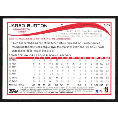 This is a 2014 Topps Update Target Red Jared Burton baseball card. The card is #US-224 and pictures show condition.