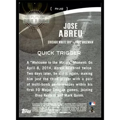 This is a 2014 Topps Update The Future is Now Jose Abreu baseball card. The card is #FN-JA2 and pictures show condition.