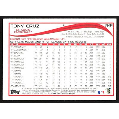 This is a 2014 Topps Update Tony Cruz baseball card. The card is #US-134 and pictures show condition.
