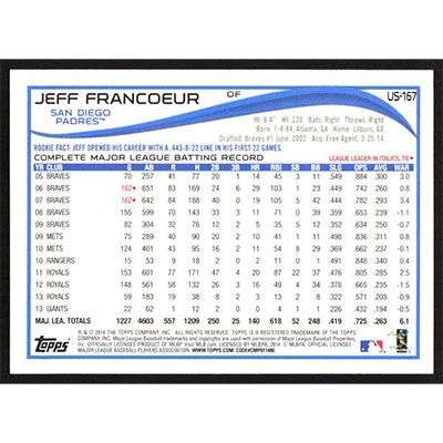 This is a 2014 Topps Update Jeff Francoeur baseball card. The card is #US-167 and pictures show condition.