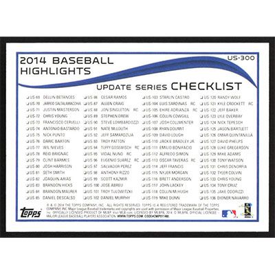 This is a 2014 Topps Update Miguel Cabrera Season Highlights Checklist baseball card. The card is #US-300 and pictures show condition. Team(s): Detroit Tigers