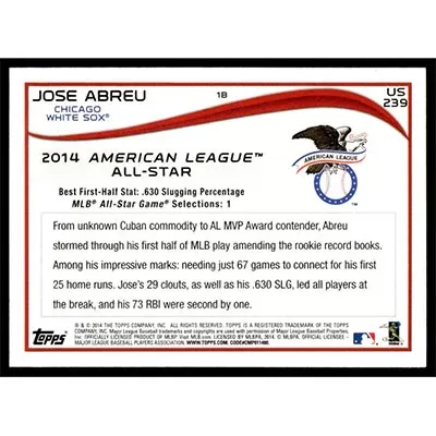 This is a 2014 Topps Update Jose Abreu All-Star baseball card. The card is #US239 and pictures show condition.