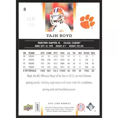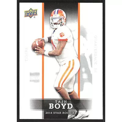 This is a 2014 Upper Deck Star Rookies Tajh Boyd football card. The card is #8 and pictures show condition.