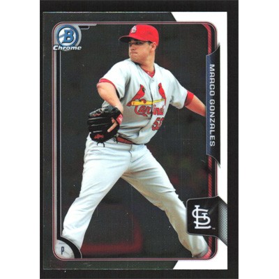 This is a 2015 Bowman Chrome Prospects Marco Gonzales baseball card. The card is #BCP14 and pictures show condition.