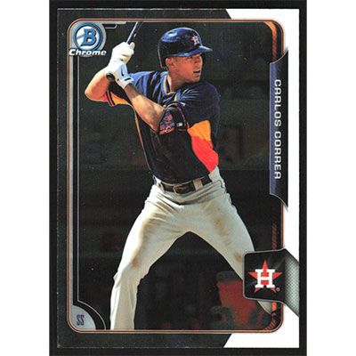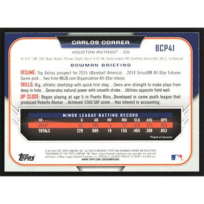 This is a 2015 Bowman Chrome Prospects Carlos Correa baseball card. The card is #BCP41 and pictures show condition.