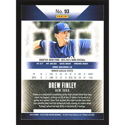 This is a 2015 Elite Extra Edition Drew Finley baseball card. The card is #93 and pictures show condition.