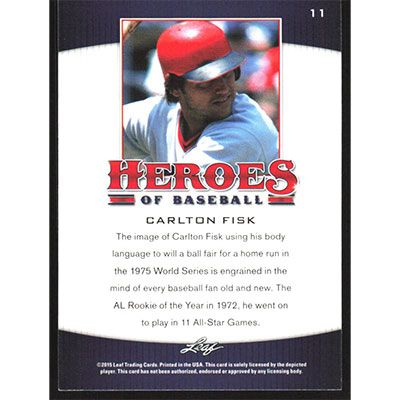This is a 2015 Leaf Heroes of Baseball Carlton Fisk baseball card. The card is #11 and pictures show condition.