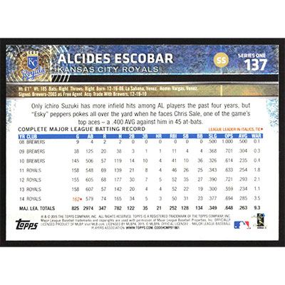 This is a 2015 Topps Alcides Escobar baseball card. The card is #137 and pictures show condition.