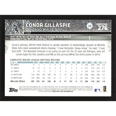 This is a 2015 Topps Conor Gillaspie baseball card. The card is #276 and pictures show condition.