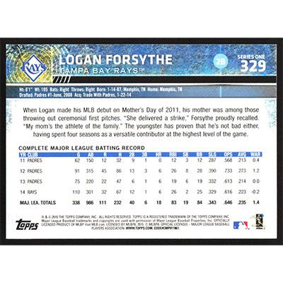 This is a 2015 Topps Logan Forsythe baseball card. The card is #329 and pictures show condition.