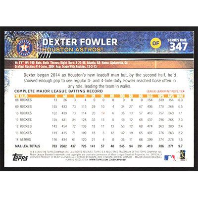 This is a 2015 Topps Dexter Fowler baseball card. The card is #347 and pictures show condition.