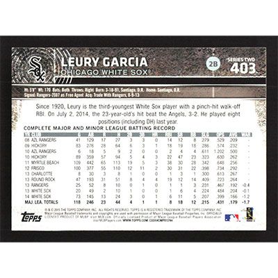 This is a 2015 Topps Leury Garcia baseball card. The card is #403 and pictures show condition.