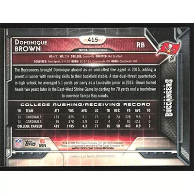 This is a 2015 Topps Dominique Brown football card. The card is #415 and pictures show condition.