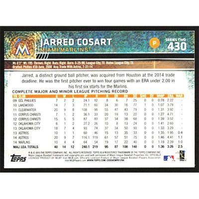 This is a 2015 Topps Jarred Cosart baseball card. The card is #430 and pictures show condition.