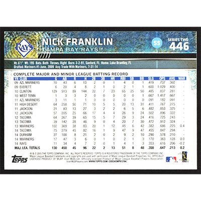 This is a 2015 Topps Nick Franklin baseball card. The card is #446 and pictures show condition.