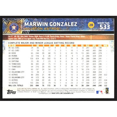 This is a 2015 Topps Marwin Gonzalez baseball card. The card is #533 and pictures show condition.