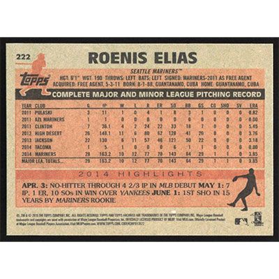 This is a 2015 Topps Archives Roenis Elias baseball card. The card is #222 and pictures show condition.