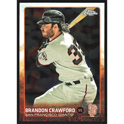 This is a 2015 Topps Chrome Brandon Crawford baseball card. The card is #111 and pictures show condition.