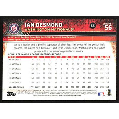 This is a 2015 Topps Chrome Ian Desmond baseball card. The card is #56 and pictures show condition.