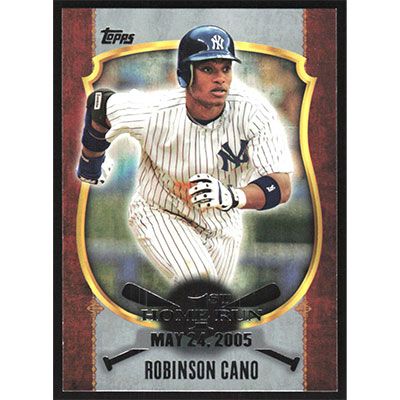 This is a 2015 Topps First Home Run Robinson Cano baseball card. The card is #FHR-04 and pictures show condition.