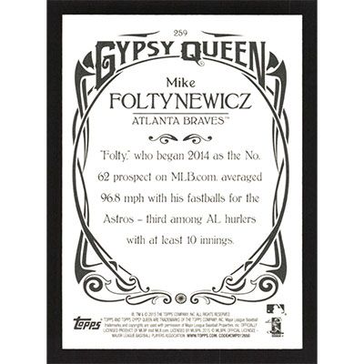 This is a 2015 Topps Gypsy Queen Mike Foltynewicz baseball card. The card is #259 and pictures show condition. Team(s): Atlanta Braves Rookie Card (RC)
