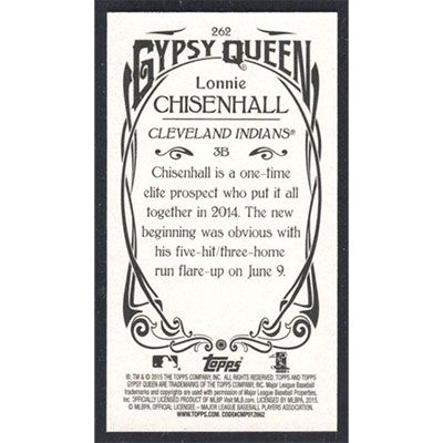This is a 2015 Topps Gypsy Queen Lonnie Chisenhall baseball card. The card is #262 and pictures show condition.