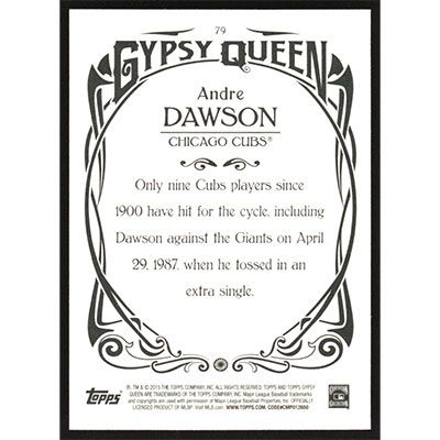 This is a 2015 Topps Gypsy Queen Andre Dawson baseball card. The card is #79 and pictures show condition.