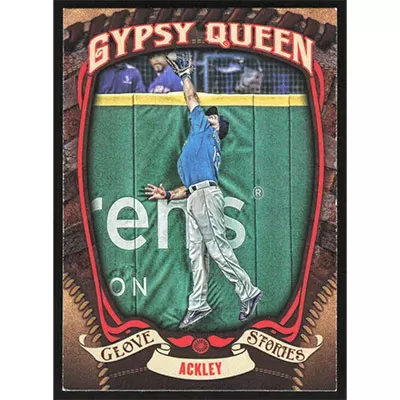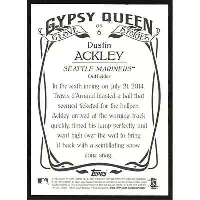 This is a 2015 Topps Gypsy Queen Glove Stories Dustin Ackley baseball card. The card is #GS-6 and pictures show condition.