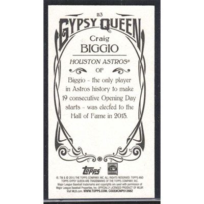 This is a 2015 Topps Gypsy Queen Mini Craig Biggio baseball card. The card is #113 and pictures show condition.
