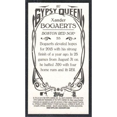 This is a 2015 Topps Gypsy Queen Mini Xander Bogaerts baseball card. The card is #187 and pictures show condition.