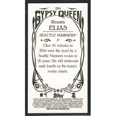 This is a 2015 Topps Gypsy Queen Mini Roenis Elias baseball card. The card is #206 and pictures show condition.