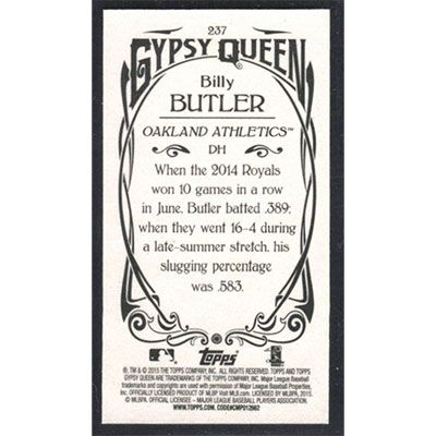 This is a 2015 Topps Gypsy Queen Mini Billy Butler baseball card. The card is #237 and pictures show condition.