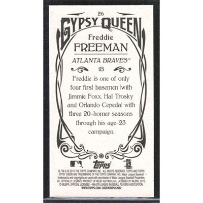 This is a 2015 Topps Gypsy Queen Mini Freddie Freeman baseball card. The card is #26 and pictures show condition.