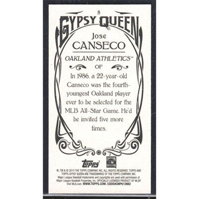 This is a 2015 Topps Gypsy Queen Mini Jose Canseco baseball card. The card is #8 and pictures show condition.