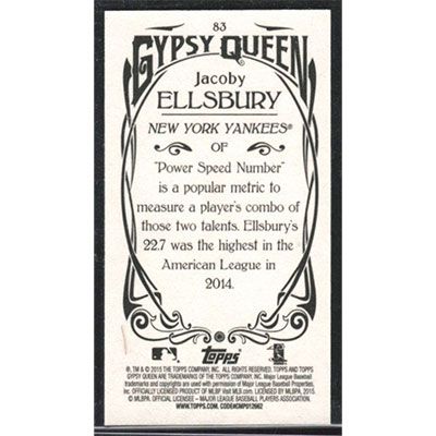This is a 2015 Topps Gypsy Queen Mini Jacoby Ellsbury baseball card. The card is #83 and pictures show condition.