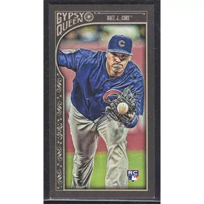 This is a 2015 Topps Gypsy Queen Mini Javier Baez baseball card. The card is #91 and pictures show condition.