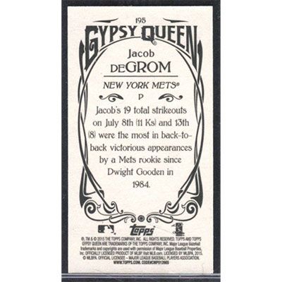 This is a 2015 Topps Gypsy Queen Mini Box Variations Jacob deGrom baseball card. The card is #195 and pictures show condition.