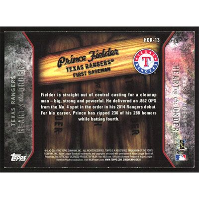 This is a 2015 Topps Heart of the Order Prince Fielder baseball card. The card is #HOR-13 and pictures show condition.